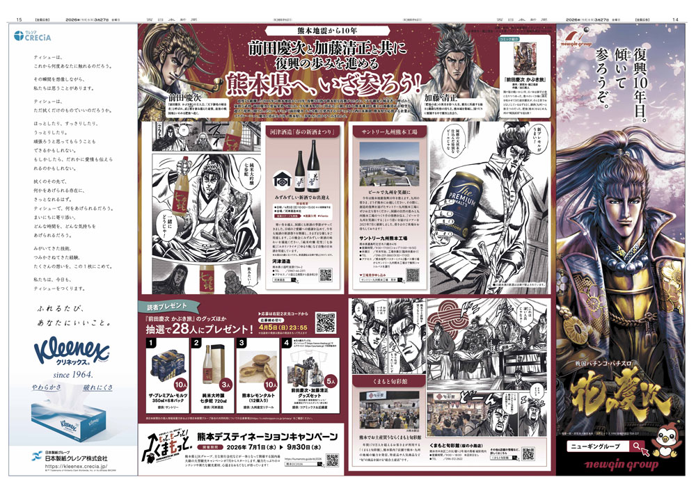 INFO3月27日の西日本新聞朝刊に、「前田慶次 かぶき旅」のコラボ紙面が掲載!