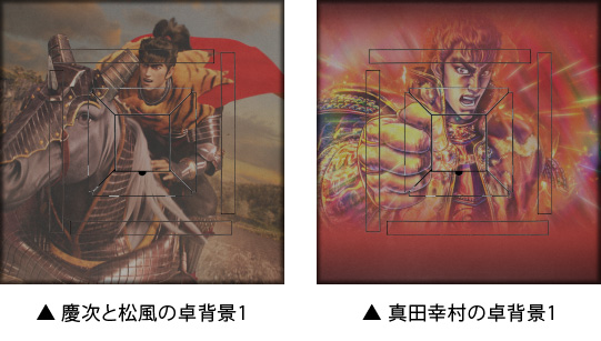 「慶次と松風の卓背景1」「真田幸村の卓背景1」など、全23種の卓背景が登場します。