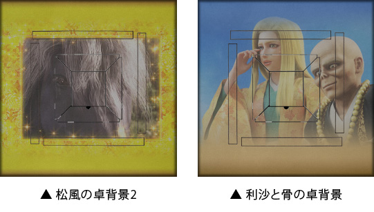 「松風の卓背景2」「利沙と骨の卓背景」など、全5種の卓背景が獲得できます。